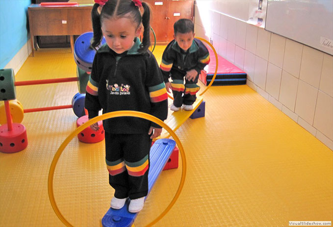 Es un lugar especial para el niño, un lugar para el movimiento, para el placer del juego en todas sus expresiones, tiene la posibilidad de: balancearse, ejercitarse en el suelo, deslizarse sobre los planos inclinados, lanzarse sobre cojines.