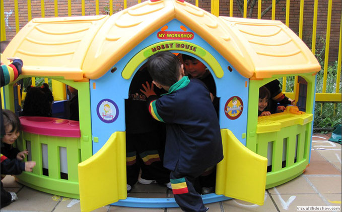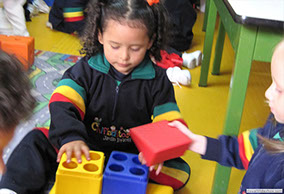 Puede correr, gritar, saltar cuerdas, construir con cubos de plástico y madera.