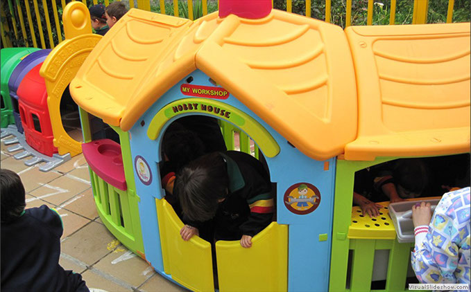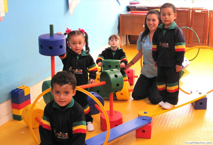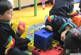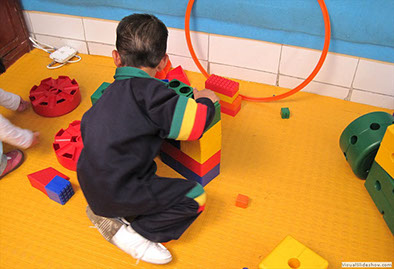 Puede correr, gritar, saltar cuerdas, construir con cubos de plástico y madera.